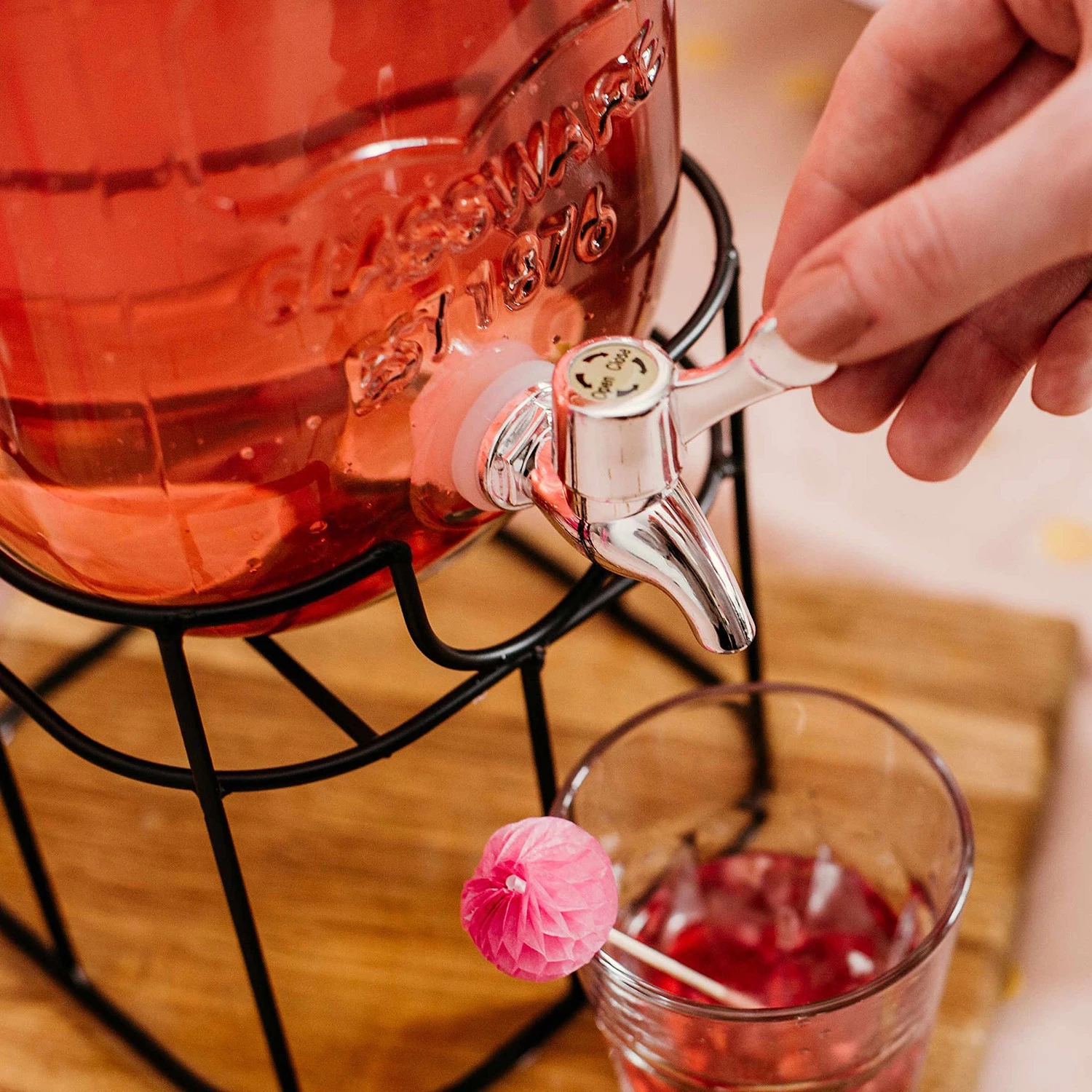 - Weitere Qualitätsmerkmale: Mit dem Refresh Metallständer platzieren Sie den Getränkespender ganz leicht auf einem Tisch oder Buffet und füllen hausgemachte Limonade, Eistee oder Orangensaft rein, stellen Gläser daneben – und lassen jeden einfach selbst zapfen. Durch den Ständer erhält der Spender einen festen Stand und ist eine optimale Ergänzung für die nächste Gartenparty!für Limonade, Eistee und Co.für entspannte Parties, auch für den Gastgeberpassend zum GetränkespenderGröße: Breite 15,5 x Tiefe 15,5 x Höhe 20 cmMaterial: Metall