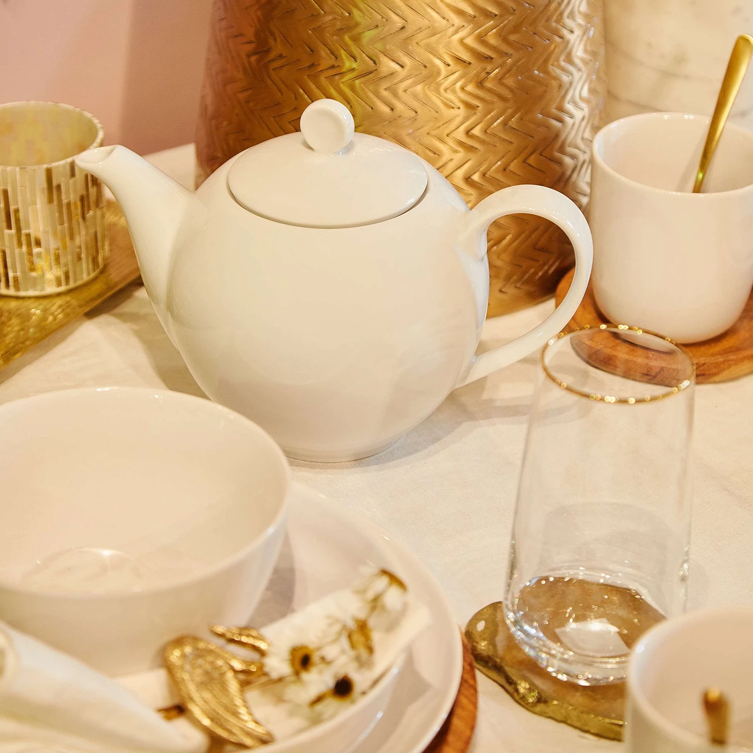 - Weitere Qualitätsmerkmale: Die Teatime ruft! Und was braucht der Teeliebhaber da eher als eine klassisch schöne Teekanne in modernem Stil, die das sanfte Aroma trägt und noch dazu auf dem Kaffeetisch eine gute Figur macht. Das weiße Design der Porzellan-Kanne passt hervorragend als schlichte, elegante Tischdeko zur kleinen Auszeit. Mit erhöhtem Ausguss und einer großzügigen, runden Form bietet das schöne Gefäß mit Deckel genug Platz und leichte Handhabung, sowie viel Zeit für warme Momente. Für Gäste, Zeit mit der Familie oder einfach ruhige Stunden zum Genießen.Qualitätsporzellan: robust und hitzebeständigDekorativ und edel durch klares und modernes DesignGeeignet als Gastronomie-Geschirr