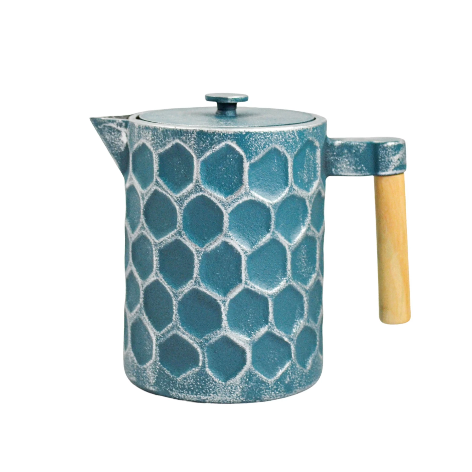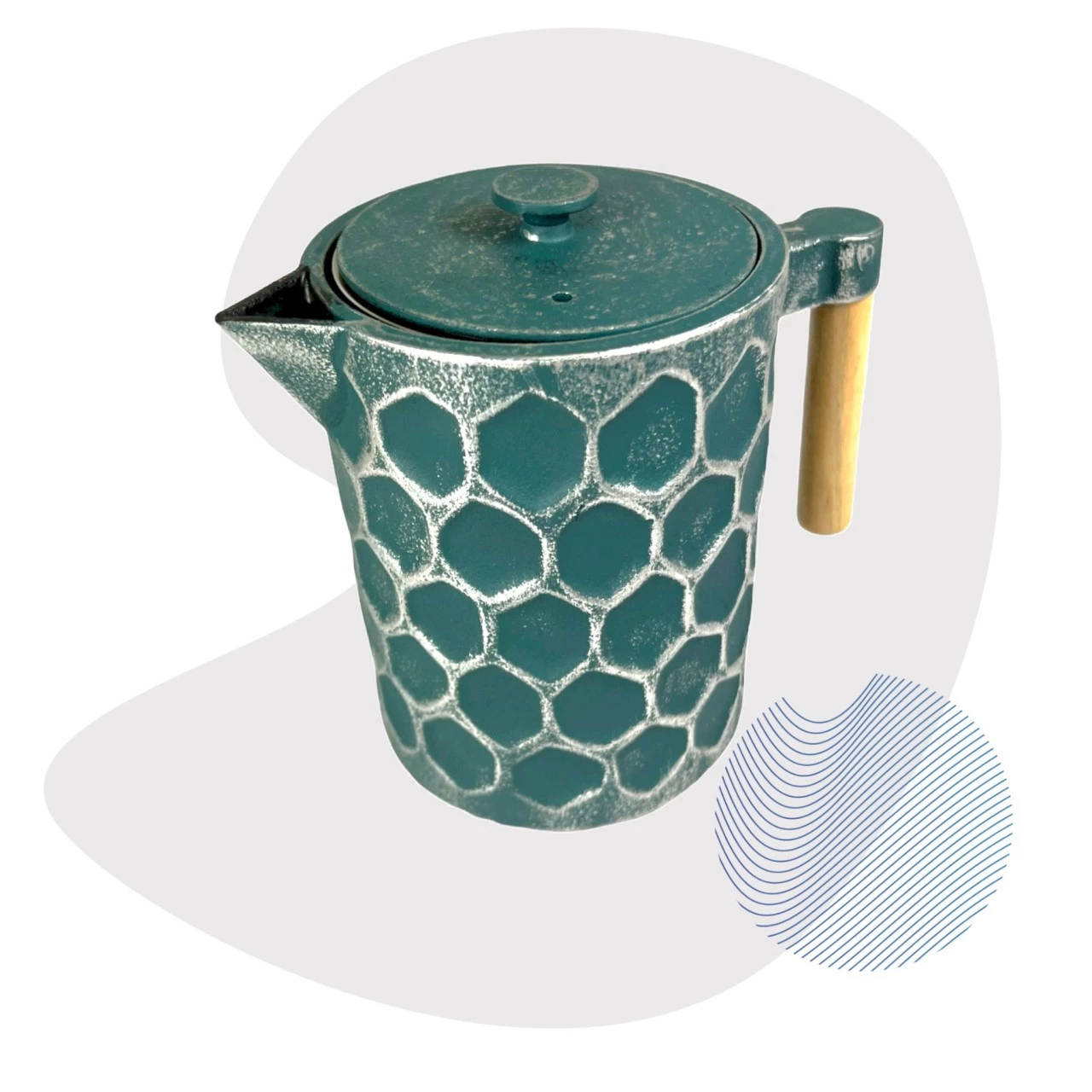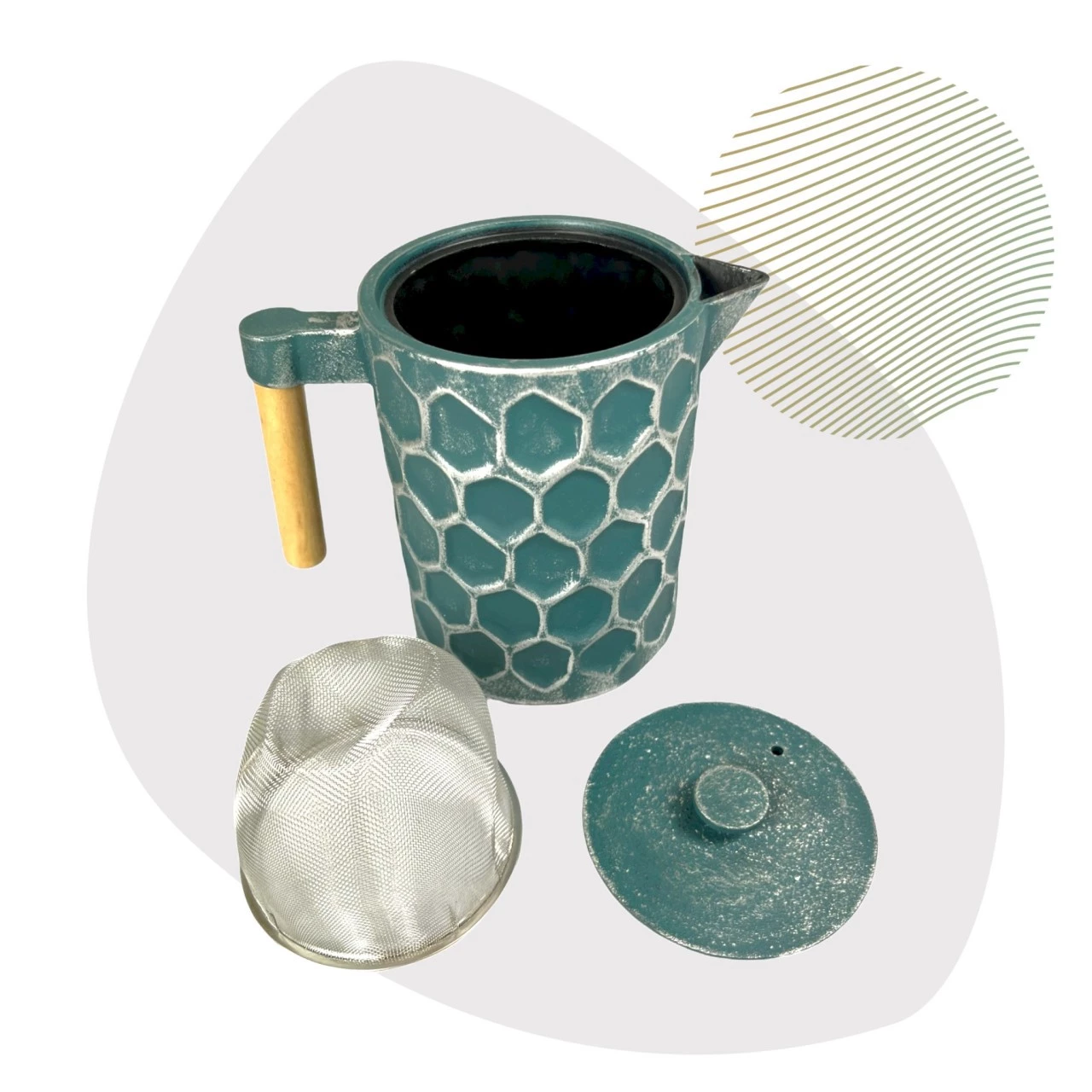 Die Teekanne aus Gusseisen ist innen durchgehend emailliert und wird mit einem Edelstahl-Sieb geliefert. Gusseisen zeichnet sich durch seine Fähigkeit aus, Hitze und Kälte länger zu speichern – ein Vorteil warmen Tee länger zu genießen, aber auch um Getränke zu kühlen. Die beigelegte Gebrauchsanleitung verrät wie man sich lange mit der richtigen Anwendung und der materialbedingten Langlebigkeit an diesem einzigartigen und formschönen Produkt erfreuen wird.