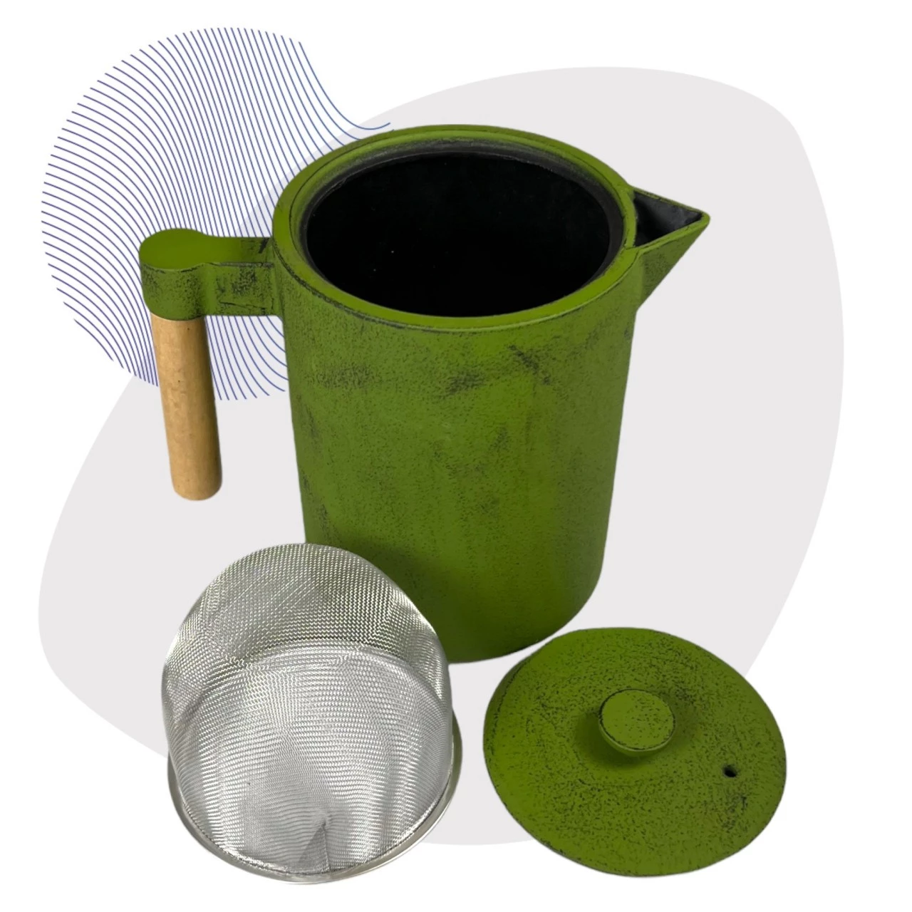 Die Teekanne aus Gusseisen ist innen durchgehend emailliert und wird mit einem Edelstahl-Sieb geliefert. Gusseisen zeichnet sich durch seine Fähigkeit aus, Hitze und Kälte länger zu speichern – ein Vorteil warmen Tee länger zu genießen, aber auch um Getränke zu kühlen. Die beigelegte Gebrauchsanleitung verrät wie man sich lange mit der richtigen Anwendung und der materialbedingten Langlebigkeit an diesem einzigartigen und formschönen Produkt erfreuen wird.