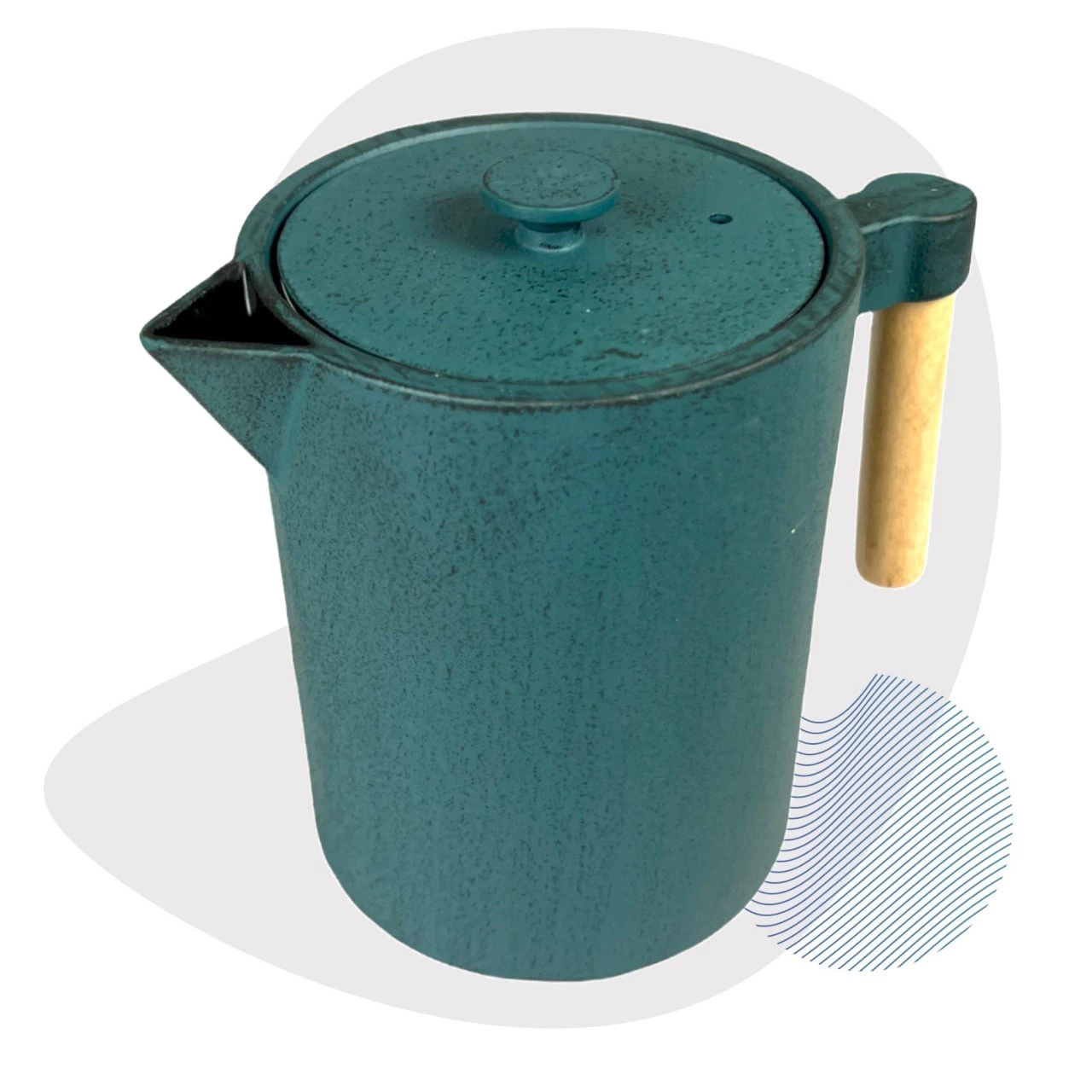 Die Teekanne aus Gusseisen ist innen durchgehend emailliert und wird mit einem Edelstahl-Sieb geliefert. Gusseisen zeichnet sich durch seine Fähigkeit aus, Hitze und Kälte länger zu speichern – ein Vorteil warmen Tee länger zu genießen, aber auch um Getränke zu kühlen. Die beigelegte Gebrauchsanleitung verrät wie man sich lange mit der richtigen Anwendung und der materialbedingten Langlebigkeit an diesem einzigartigen und formschönen Produkt erfreuen wird.