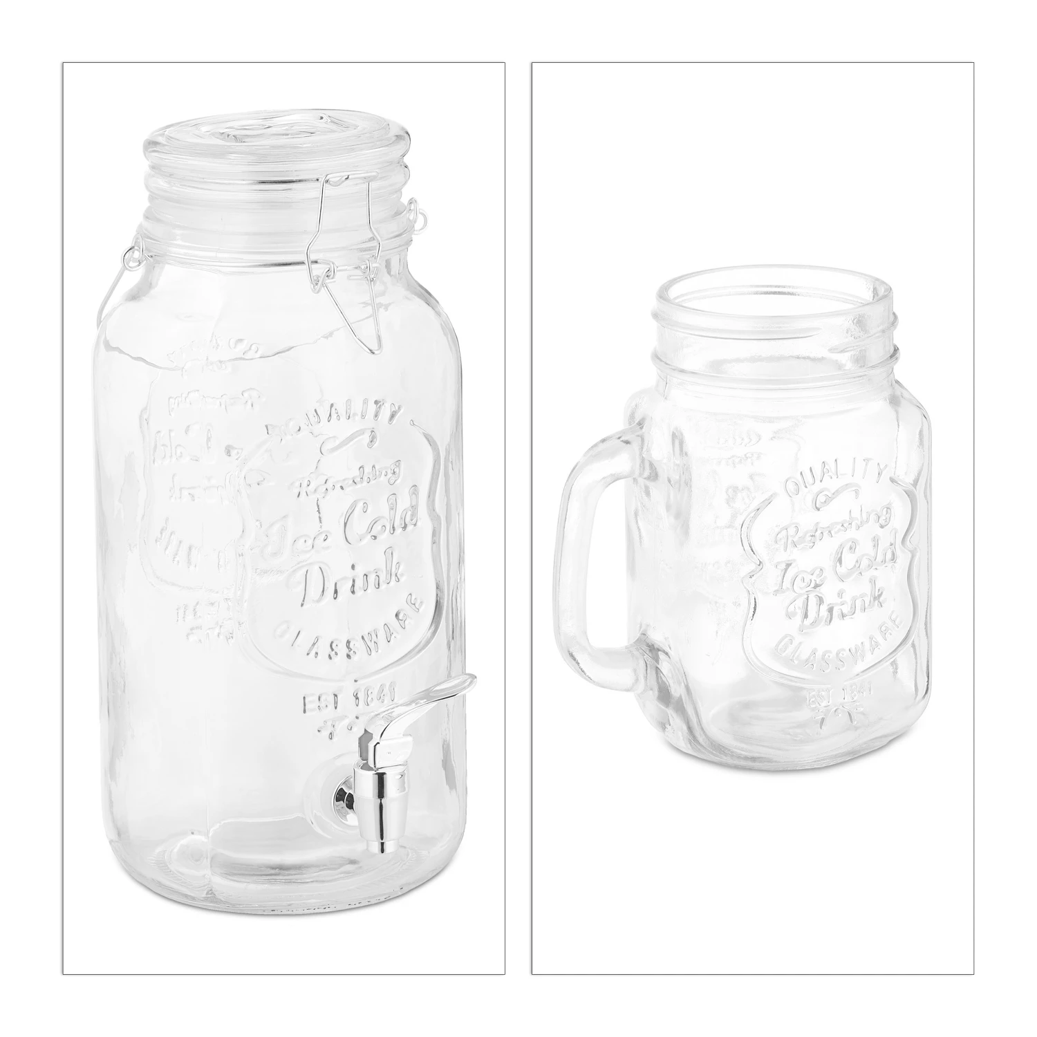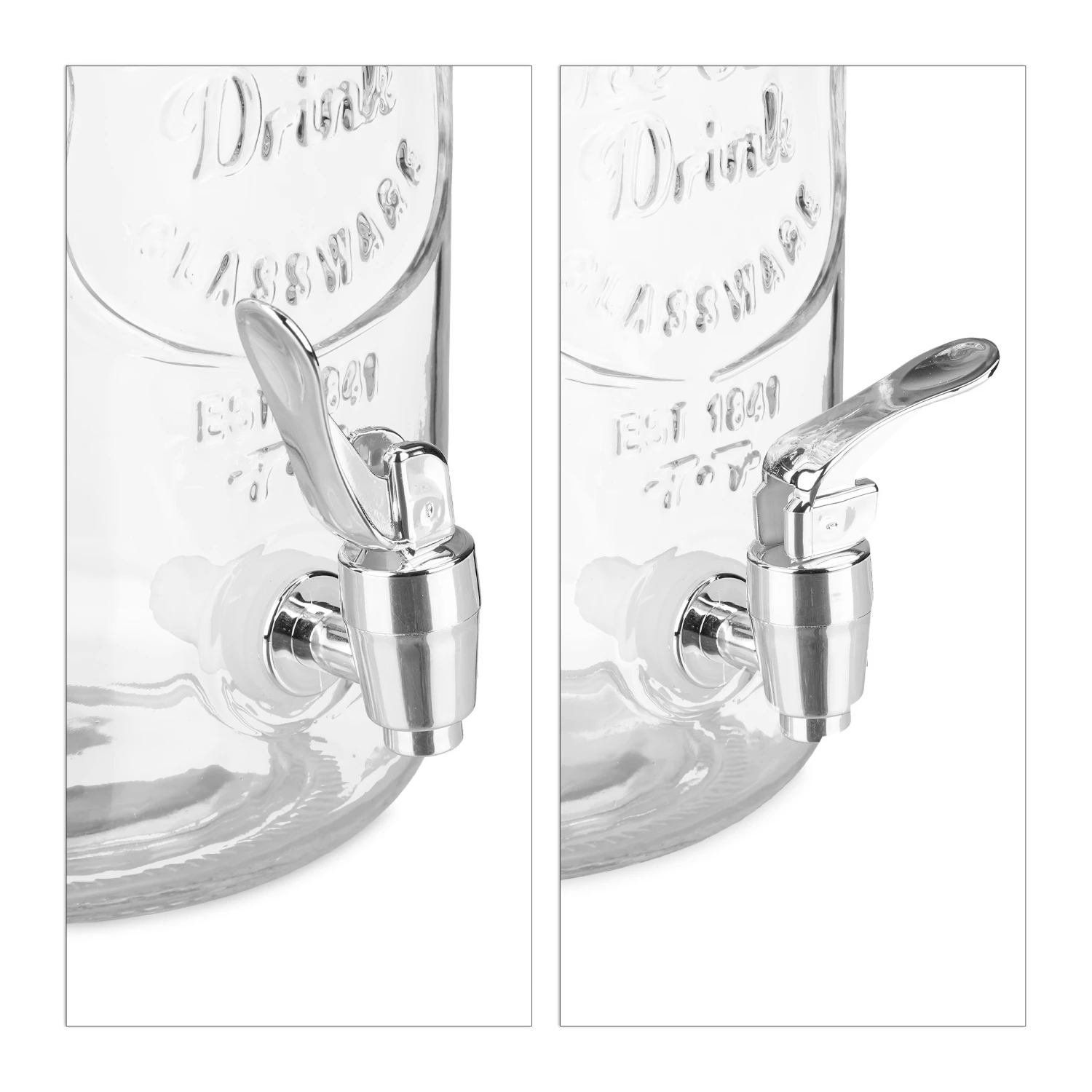 Dieser Getränkespender im Retro-Design ist das passende Accessoire für Ihre nächste Gartenparty. Bei einem maximalen Füllvolumen von 3,4 l versorgen Sie Ihre Gäste mit Bowle, Bier oder Limonade und haben dank des transparenten Glases den Füllstand stets im Blick. Mithilfe des Zapfhahns können sich Ihre Gäste selbstständig bedienen – das sorgt für gute Stimmung beim nächsten Geburtstag, Grillfest oder einer Einweihungsparty. Im Lieferumfang sind zusätzlich 4 Gläser im Retro-Design enthalten.