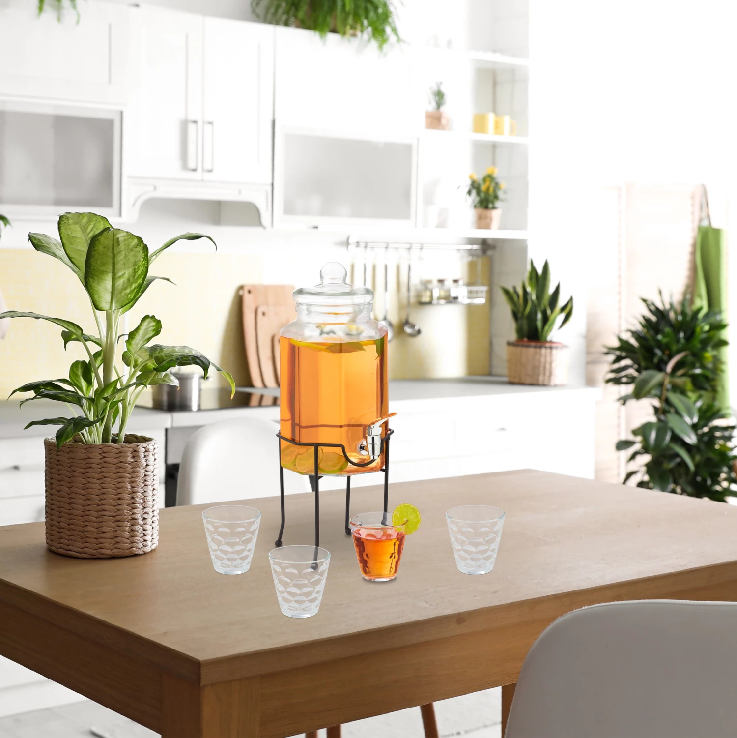 – Inklusive 4 Trinkgläsern mit dekorativem Innenrelief