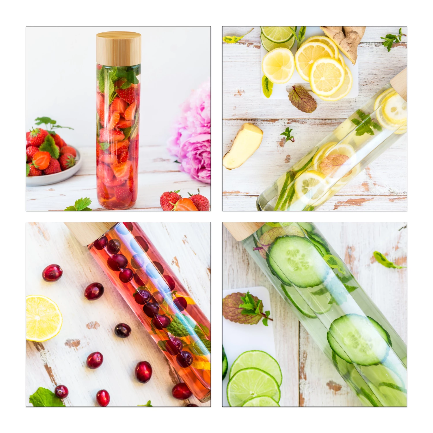 – Material: Bambus, Edelstahl, Borosilikatglas, Neopren