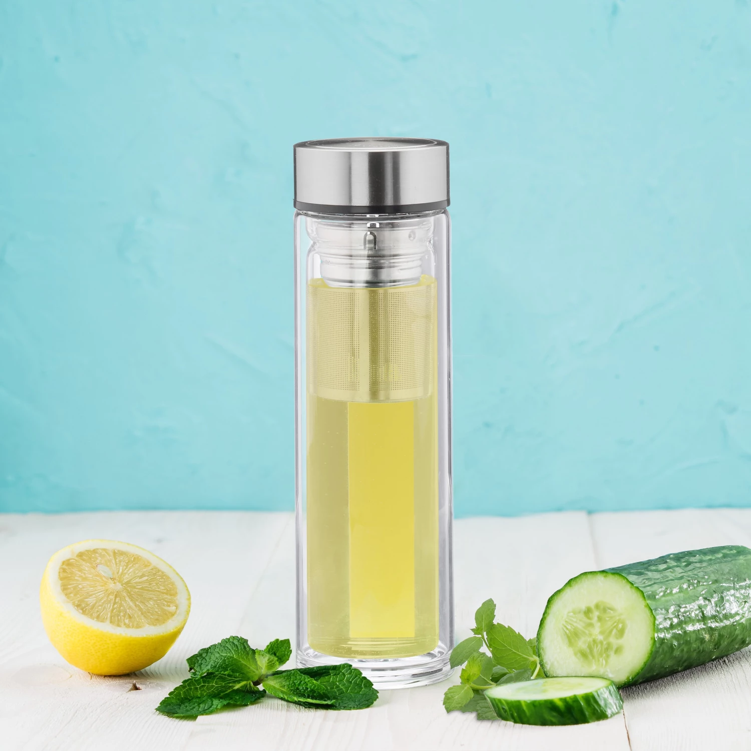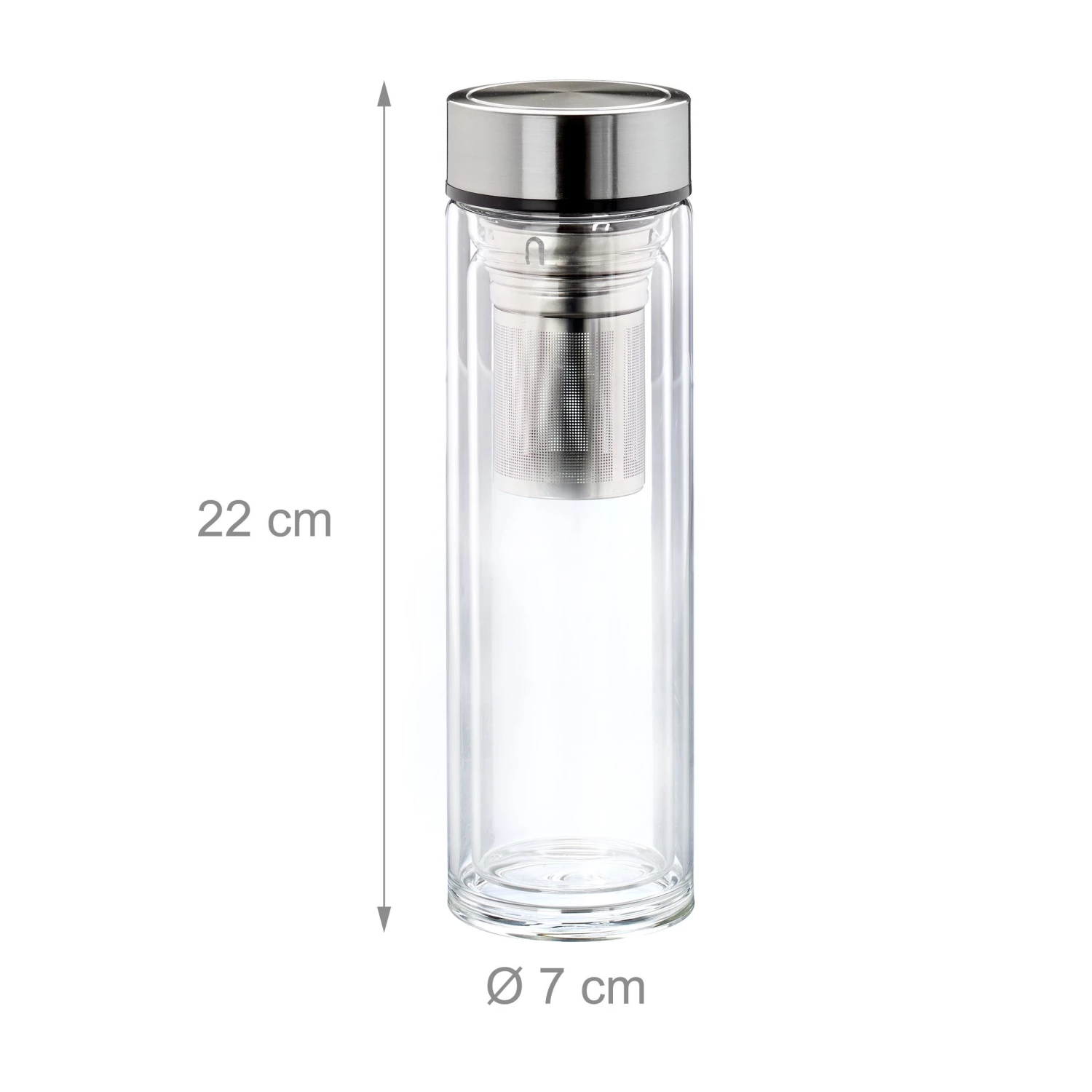 Die Teeflasche mit Siebeinsatz ist der ideale Begleiter, um auch unterwegs frische Getränke zu genießen. In dem integrierten Teesieb können Sie Ihren Lieblingstee direkt in der Flasche aufbrühen. Nutzen Sie die vielseitige Trinkflasche auch für angesagte Cold-Brew-Getränke, selbstgemachte Smoothies, erfrischendes Frucht- oder gesundes Detox-Wasser. Die Flasche im edlen Design ist nicht nur praktisch, sondern sieht auch schick aus. Die Neopren-Hülle isoliert zusätzlich und schützt bei Stößen.