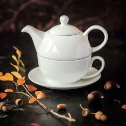 Maxwell & Williams Teekanne Round (3-teilig) – Porzellan – Weiß – Fassungsvermögen: 0,45 L